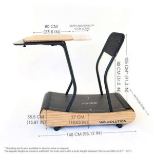 The MTD700R version has a standing aid that you can lean on spontaneously at any time. This gives you another relaxing working position in addition to walking and standing, while still remaining active. The highlight: The desk is adjustable in depths and you can pull it towards you when leaning against it. The standing aid is covered with slightly elastic nylon, which offers just the right support. The treadmill automatically blocks in the opposite direction so that you cannot slip away when leaning against it.