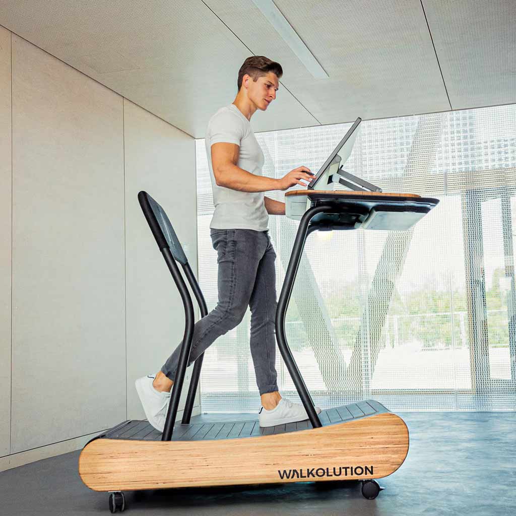 The manual curved treadmill desk MTD700R “WANDERLUST” allows you to do just that. You can stay active during your working day. The treadmill is whisper-quiet, maintenance-free, with no power consumption, and intuitive to use.